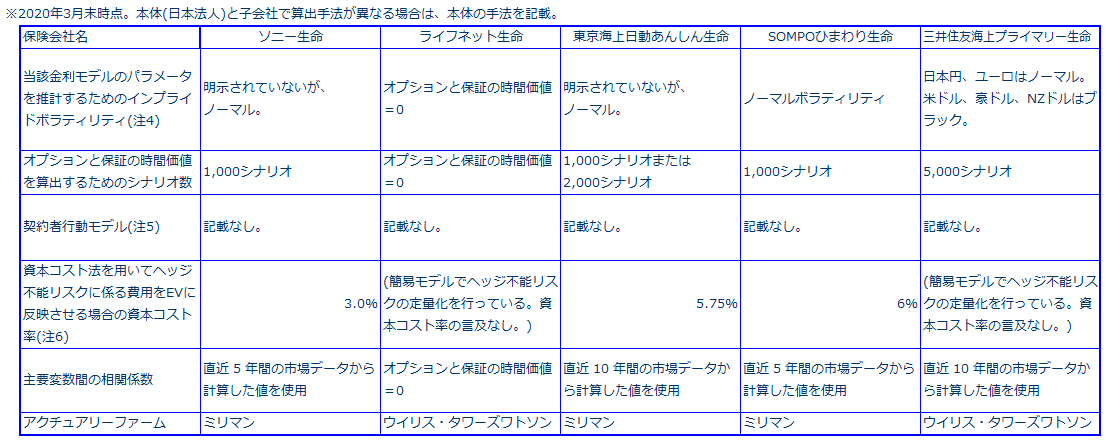 補足2 ソニー生命、T&Dホールディングス、東京海上日動あんしん生命及びSOMPOひまわり生命は開示している。なお、MCEV原則に準拠していない住友生命も開示している。
